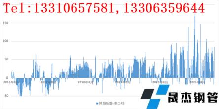 另外,我們?cè)賮砜匆幌?,港口的PB粉價(jià)格和麥克粉價(jià)格的價(jià)差,這兩個(gè)品種在含鐵量上相差不多,同時(shí)就是小指標(biāo)含量有一定的差異,所以之前一直維持一個(gè)穩(wěn)定的價(jià)差,但是現(xiàn)在這個(gè)價(jià)差也出現(xiàn)了明顯的擴(kuò)張,這表明,在同樣差不多的品質(zhì)里面,PB粉相對(duì)來說更貴了。