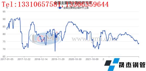 圖4全國主要厚壁無縫鋼管企業(yè)高爐開工率