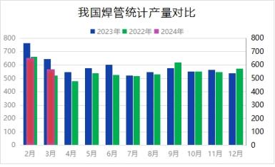 一、3月國(guó)內(nèi)焊接無(wú)縫鋼管產(chǎn)量同比減少78.3萬(wàn)噸
