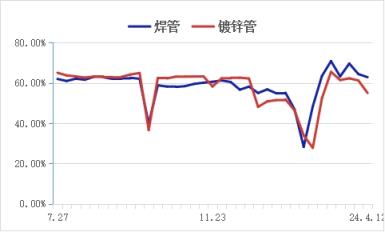 津冀區(qū)域管廠焊鍍管產(chǎn)能利用率走勢(shì)圖