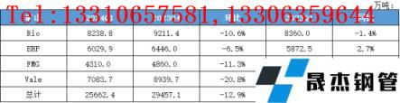 Newman第一季度產(chǎn)量1503.2噸,環(huán)比下降2.8%,同比上升26.1%;Area C第一季度產(chǎn)量2492.0噸,環(huán)比下降4.4%,同比下降1.4%;Yandi第一季度產(chǎn)量443.4噸,環(huán)比下降10.9%,同比下降10.3%;Jimblebar第一季度產(chǎn)量1591.3噸,環(huán)比下降11.3%,同比下降4.0%。