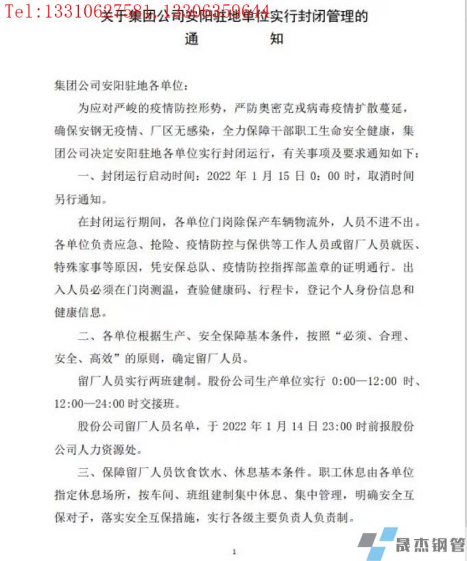 1月14日安鋼內(nèi)部發(fā)布了封廠通知,要求從1月15日零時起禁止員工出入廠區(qū),但仍維持兩班生產(chǎn)。