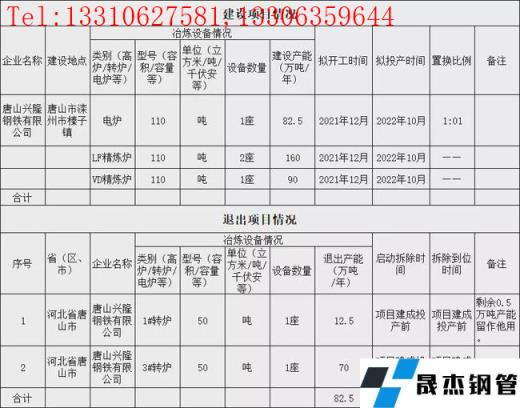 唐山興隆鋼鐵有限公司煉鋼產(chǎn)能等量置換轉(zhuǎn)型升級(jí)項(xiàng)目產(chǎn)能置換方案