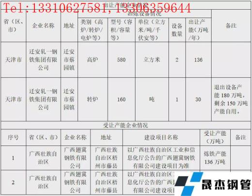 12月31日,天津市工信局發(fā)布遷安軋一鋼鐵集團(tuán)有限公司產(chǎn)能出讓公告。遷安軋一鋼鐵集團(tuán)有限公司出讓580m3高爐2座和160t轉(zhuǎn)爐1座設(shè)備給廣西翅冀鋼鐵,共計(jì)出讓煉鐵產(chǎn)能136萬(wàn)噸,煉鋼產(chǎn)能30萬(wàn)噸。