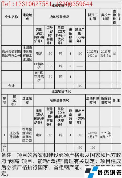 徐州金虹鋼鐵集團(tuán)有限公司電爐改造項(xiàng)目產(chǎn)能置換方案