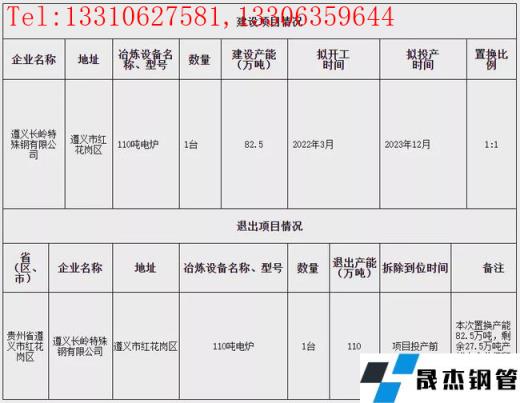 遵義長(zhǎng)嶺特殊鋼有限公司產(chǎn)能置換方案