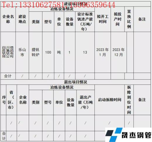 12月24日,四川省經(jīng)信廳發(fā)布四川德勝集團(tuán)釩鈦有限公司提釩轉(zhuǎn)爐建設(shè)項(xiàng)目產(chǎn)能置換方案。方案表明,四川德勝集團(tuán)釩鈦有限公司擬于2023年1月在樂(lè)山市新建100t提釩轉(zhuǎn)爐1座,產(chǎn)能13萬(wàn)噸/年,預(yù)計(jì)于2023年12月投產(chǎn)。