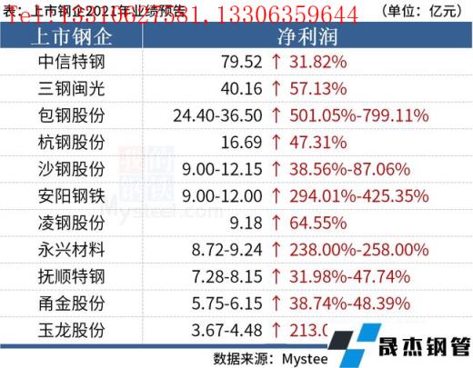 免責(zé)聲明:本網(wǎng)站(山東聊城晟杰無縫鋼管廠m.abagaf.com)刊載的“2021年鋼企利潤創(chuàng)新高,中信特鋼實現(xiàn)凈利近80億”等均源于網(wǎng)絡(luò),版權(quán)歸原作者所有,且僅代表原作者觀點,本文所載信息僅供參考。轉(zhuǎn)載僅為學(xué)習(xí)與交流之目的,如無意中侵犯您的合法權(quán)益,請及時聯(lián)系刪除。本網(wǎng)站刊登此篇文章并不意味著本站贊同其觀點或證實其內(nèi)容的真實性,我們不對其科學(xué)性、嚴(yán)肅性等作任何形式的保證。如果侵犯了您的版權(quán),請盡快聯(lián)系我們予以撤銷,謝謝合作!