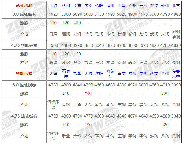 全國24個主要市場3.0 熱軋板卷平均價格4915元/噸,較上個交易日下調(diào)7元/噸。