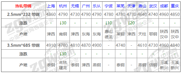 全國10個主要市場3.5mm*685 帶鋼平均價格4815元/噸,較上個交易日下調(diào)5元/噸。