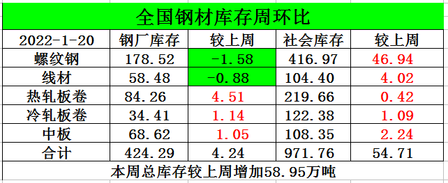 庫存較上周增加58.95萬噸