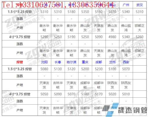 全國15個主要市場4寸*3.75 焊管平均價格5149元/噸,較上個交易日價格相同