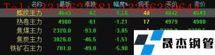 今日螺紋主力期貨跌62,收?qǐng)?bào)4843,跌幅1.26%;熱卷主力跌61,收?qǐng)?bào)4980,跌幅1.21%;焦煤主力跌93,收?qǐng)?bào)2320,跌幅3.85%;焦炭主力跌46.5,收?qǐng)?bào)3026,跌幅1.51%;鐵礦石主力跌49,收?qǐng)?bào)781,跌幅5.9%。