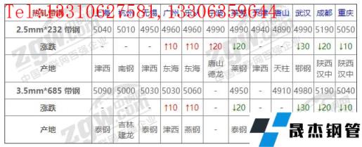 全國12個主要市場2.5mm*232 帶鋼平均價格4997元/噸,較上個交易日下調(diào)3元/噸。