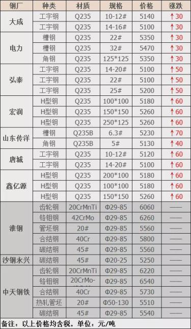 今日型、特鋼共10家無縫鋼管廠家調(diào)價(jià)發(fā)布,其中: