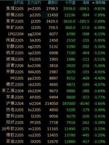 3月14日,國(guó)內(nèi)商品期貨收盤紛紛上演了一出“跌媽不認(rèn)”:焦煤跌近10%,棕櫚油、焦炭等跌超7%,瀝青、紙漿等跌超5%,PP、鄭醇等跌超4%,蘋果、塑料等跌逾3%,燃油、PVC等跌超2%,滬銀、菜粕等跌超1%,滬銅、滬鉛等小幅下跌。
