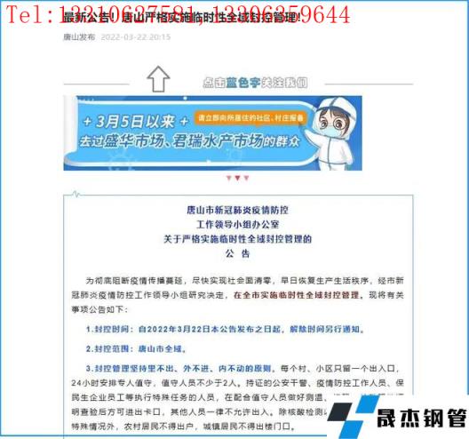 免責聲明:本網(wǎng)站(山東聊城晟杰無縫鋼管廠m.abagaf.com)刊載的“突發(fā)!唐山全域性封控,鋼市影響升級”等均源于網(wǎng)絡(luò),版權(quán)歸原作者所有,且僅代表原作者觀點,本文所載信息僅供參考。轉(zhuǎn)載僅為學習與交流之目的,如無意中侵犯您的合法權(quán)益,請及時聯(lián)系刪除。本網(wǎng)站刊登此篇文章并不意味著本站贊同其觀點或證實其內(nèi)容的真實性,我們不對其科學性、嚴肅性等作任何形式的保證。如果侵犯了您的版權(quán),請盡快聯(lián)系我們予以撤銷,謝謝合作!
