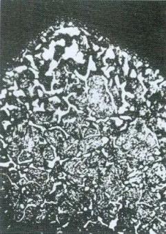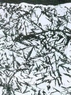 淬火加熱的目的是使工件在淬火過程中完成組織轉(zhuǎn)變。為此,必須加熱到適當(dāng)溫度并有足夠保溫時(shí)間。加熱溫度偏低和保溫時(shí)間不足使得原珠光體組織未能完全轉(zhuǎn)變?yōu)閵W氏體和轉(zhuǎn)變的奧氏體成分不均勻,淬火后得不到完全馬氏體組織,結(jié)果使工件淬火后形成軟點(diǎn)。 圖1 為T12鋼制造的手用絲錐因加熱不足形成的顯微組織:細(xì)針馬氏體+淬火托氏體+珠光體。性能上表現(xiàn)為硬度不均勻。