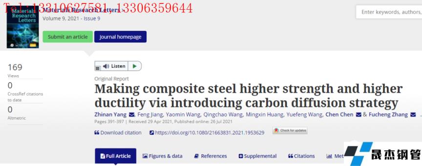 在本研究中,燕山大學提供了一種新的元素擴散策略,即輕元素(如碳)的長程擴散。與初始整體馬氏體鋼相比,該策略不會降低每一層的機械性能,并提高復合馬氏體鋼的強度和延展性。相關(guān)研究成果以題“Making composite steel higher strength and higher ductility via introducing carbon diffusion strategy”發(fā)表在國際著名期刊Materials Research Letters上。
