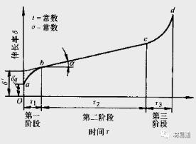 第三階段cd為加速蠕變階段隨著時間的延長,蠕變速率逐漸增大,到d點時產(chǎn)生蠕變斷裂。