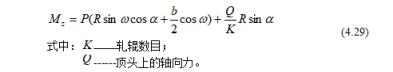 當(dāng)有頂頭時(shí)如圖4-13所示,在前進(jìn)方向受到頂頭的軸向阻力(Q),這時(shí)傳動(dòng)軋輥所需總軋制力矩為:
