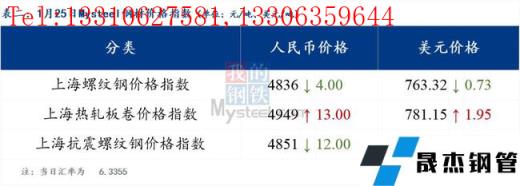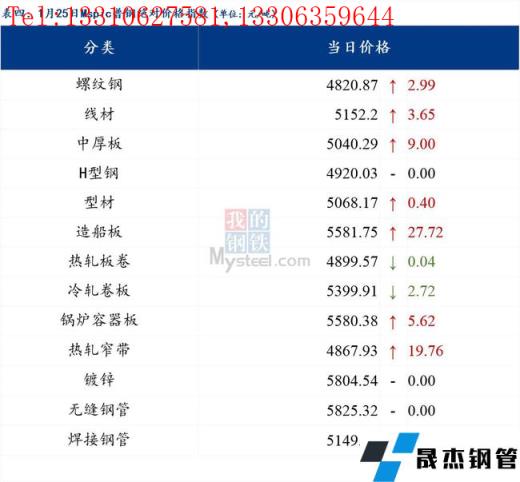 1月25日Myspic普鋼絕對價格指數(shù)變化:綜合指數(shù)5041.97,上漲3.92;螺紋鋼指數(shù)4820.87,上漲2.99;線材指數(shù)5152.2,上漲3.65;熱軋板卷指數(shù)4899.57,下跌0.04;冷軋板卷指數(shù)5399.91,下跌2.72;中厚板指數(shù)5040.29,上漲9.0。