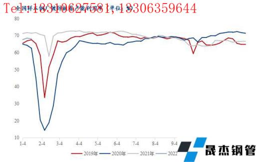 圖2:全國(guó)樣本無(wú)縫鋼管廠鍍鋅板卷產(chǎn)能利用率