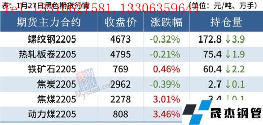 熱軋板卷:1月27日,全國24個(gè)主要城市4.75mm熱軋板卷均價(jià)4914元/噸,較上個(gè)交易日持平。隨著春節(jié)臨近,現(xiàn)貨市場(chǎng)商家逐步離市,市場(chǎng)已處于有價(jià)無市局面,工人已陸續(xù)返鄉(xiāng),終端需求逐步停滯。受冬奧會(huì)限產(chǎn)抑制影響,節(jié)日期間無縫鋼管廠家高爐開工率存下調(diào)預(yù)期,供應(yīng)量亦將繼續(xù)回落,節(jié)后庫存壓力尚可。綜合來看,預(yù)計(jì)28日熱軋板卷價(jià)格持穩(wěn)運(yùn)行。