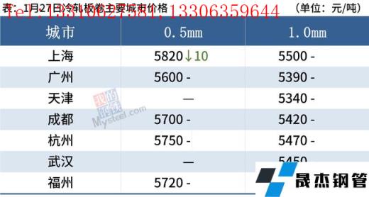 冷軋板卷:1月27日,全國24個(gè)主要城市1.0mm冷卷均價(jià)5468元/噸,較上個(gè)交易日持平。據(jù)不完全統(tǒng)計(jì),現(xiàn)冷軋無縫鋼管廠家庫存36.05萬噸,周環(huán)比增加1.64萬噸,社會(huì)庫存125.26萬噸,周環(huán)比增加2.88萬噸,周消費(fèi)量77.89萬噸,環(huán)比減少1.95萬噸。綜合來看,故預(yù)計(jì)28日國內(nèi)冷軋板卷價(jià)格或?qū)⒗^續(xù)平穩(wěn)運(yùn)行。