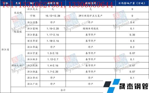 據(jù)調(diào)研,截至1月28日,浙江省內(nèi)無縫鋼管廠家已處于春節(jié)停產(chǎn)狀態(tài),日均影響產(chǎn)量較上周2.1萬噸相比維持不變。長流程無縫鋼管廠家浙江元立螺紋鋼生產(chǎn)目前正常;寧鋼1座2500立方高爐已點(diǎn)火復(fù)產(chǎn)。短流程無縫鋼管廠家浙江萬泰、浙江富鋼、浙江譽(yù)鑫、麗水華宏均受春節(jié)影響已經(jīng)處于停產(chǎn)狀態(tài),復(fù)產(chǎn)時(shí)間預(yù)計(jì)2月中旬左右,日均影響產(chǎn)量1.35萬噸;調(diào)坯軋材廠臨近春節(jié)的緣故,目前也皆處于停產(chǎn)狀態(tài),日均影響產(chǎn)量0.75萬噸,復(fù)產(chǎn)時(shí)間預(yù)計(jì)2月中旬左右。具體復(fù)產(chǎn)時(shí)間以無縫鋼管廠家公布時(shí)間為準(zhǔn)。綜合來看,浙江省內(nèi)無縫鋼管廠家總計(jì)日均影響產(chǎn)量2.1萬噸左右,較上周維持不變。具體檢修情況詳見下圖: