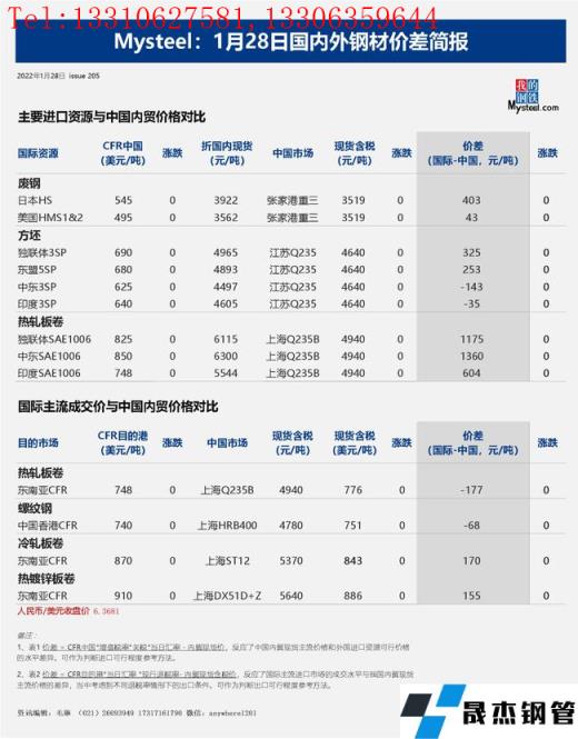 免責聲明:本網(wǎng)站(山東聊城晟杰無縫鋼管廠m.abagaf.com)刊載的“2022年01月28日日報:國內(nèi)外鋼材_無縫鋼管價差匯總(2022.1.28)”等均源于網(wǎng)絡,版權(quán)歸原作者所有,且僅代表原作者觀點,本文所載信息僅供參考。轉(zhuǎn)載僅為學習與交流之目的,如無意中侵犯您的合法權(quán)益,請及時聯(lián)系刪除。本網(wǎng)站刊登此篇文章并不意味著本站贊同其觀點或證實其內(nèi)容的真實性,我們不對其科學性、嚴肅性等作任何形式的保證。如果侵犯了您的版權(quán),請盡快聯(lián)系我們予以撤銷,謝謝合作!
