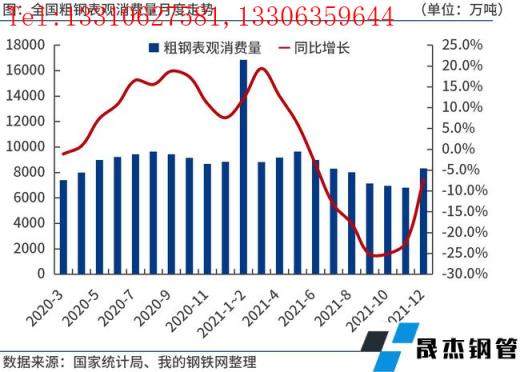 2021年12月份,全國粗鋼日均產(chǎn)量278.04萬噸,環(huán)比大增20.3%,預(yù)計(jì)1月份產(chǎn)量變化不大。臨近春節(jié)假期,鋼市進(jìn)入傳統(tǒng)需求淡季。不過,由于多部門集中出臺穩(wěn)增長政策,市場情緒得到提振,加之無縫鋼管廠家集中補(bǔ)庫,原燃料價(jià)格強(qiáng)勢上漲,推動(dòng)鋼價(jià)震蕩偏強(qiáng)運(yùn)行。今年我國基建投資有望發(fā)力,但房地產(chǎn)投資不容樂觀,鋼鐵消費(fèi)或弱于去年。如果節(jié)后無縫鋼管廠家適度控制產(chǎn)能釋放,合理安排復(fù)工復(fù)產(chǎn)進(jìn)度,實(shí)現(xiàn)供需動(dòng)態(tài)平衡,鋼價(jià)或延續(xù)震蕩偏強(qiáng)運(yùn)行。