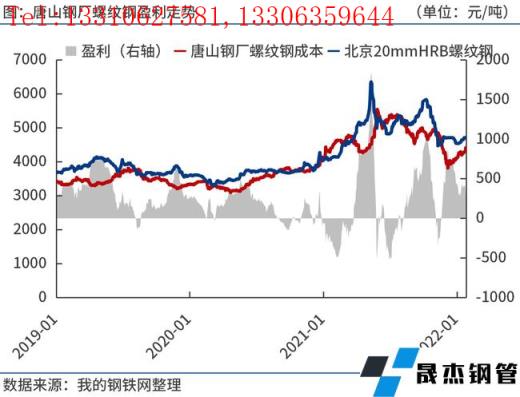 成本方面,據(jù)筆者測算,1月底唐山長流程無縫鋼管廠家螺紋鋼噸鋼毛利(成本不包含三項(xiàng)費(fèi)用、折舊等)300元/噸左右。由于1月份原燃料價(jià)格漲幅高于鋼價(jià),導(dǎo)致無縫鋼管廠家效益有所下滑,部分電爐廠因虧損減產(chǎn)。