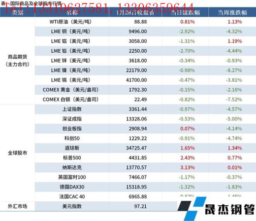 金融市場(chǎng):本周主要商品期貨品種多下跌,其中黃金大跌8.27%;全球股市中,中歐股市基本下跌,美國(guó)股市跌后反彈;美元指數(shù)97.21,上漲1.65%。