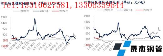 無(wú)縫厚壁鋼管廠家利潤(rùn)方面,截至1月28日,調(diào)研江蘇螺紋噸鋼毛利在260元/噸附近,河北螺紋噸鋼毛利在100元/噸附近,月內(nèi)噸鋼毛利呈現(xiàn)先降后升趨勢(shì),截至當(dāng)前兩地區(qū)螺紋噸鋼毛利略高于上月同期水平。隨著春節(jié)假期的臨近,下游需求減弱,原料端鐵礦石港口庫(kù)存開始降庫(kù),無(wú)縫厚壁鋼管廠家節(jié)前補(bǔ)庫(kù)規(guī)模不斷擴(kuò)大,導(dǎo)致原料成本上升較為明顯,上半月無(wú)縫厚壁鋼管廠家噸鋼毛利出現(xiàn)回落;但下半月經(jīng)濟(jì)數(shù)據(jù)發(fā)布、成材冬儲(chǔ)略超預(yù)期,成材生產(chǎn)商看好節(jié)后需求,價(jià)格堅(jiān)挺,噸鋼毛利回升明顯。