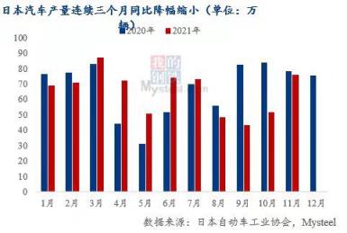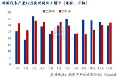 2021年11月日本汽車(chē)產(chǎn)量76萬(wàn)輛,環(huán)比增長(zhǎng)47%,截至2021年11月,日本汽車(chē)產(chǎn)量同比降幅連續(xù)三個(gè)月收窄;韓國(guó)2021年12月汽車(chē)產(chǎn)量32萬(wàn)輛,環(huán)比增長(zhǎng)5%,同比增長(zhǎng)7%,是近四個(gè)月首次實(shí)現(xiàn)同比增長(zhǎng)。