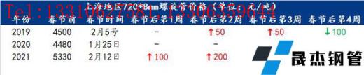 小編匯總近3年春節(jié)后四周螺旋管品種主流城市價格變化情況,2019、2021年主流城市螺旋管價格在節(jié)后以上漲為主。2020年受公共衛(wèi)生事件影響,復(fù)工延期,需求出現(xiàn)滯后現(xiàn)象,部分城市在春節(jié)后價格出現(xiàn)下跌。