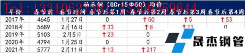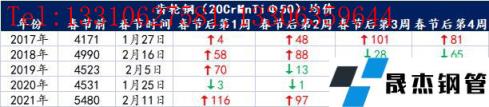 小編匯總近5年春節(jié)后四周優(yōu)特鋼各品種均價變化情況,以供參考。