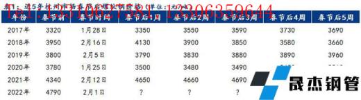 免責聲明:本網站(山東聊城晟杰無縫鋼管廠m.abagaf.com)刊載的“近5年春節(jié)前后杭州市場螺紋鋼價格和庫存走勢”等均源于網絡,版權歸原作者所有,且僅代表原作者觀點,本文所載信息僅供參考。轉載僅為學習與交流之目的,如無意中侵犯您的合法權益,請及時聯系刪除。本網站刊登此篇文章并不意味著本站贊同其觀點或證實其內容的真實性,我們不對其科學性、嚴肅性等作任何形式的保證。如果侵犯了您的版權,請盡快聯系我們予以撤銷,謝謝合作!