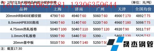 ◎ 2月7日,全國31個(gè)主要城市螺紋鋼均價(jià)4892元/噸,較節(jié)前(1月30日)上漲75元/噸;全國24個(gè)主要城市熱軋板卷均價(jià)5011元/噸,上漲97元/噸。