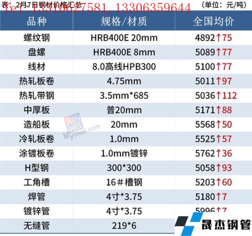 建筑厚壁無縫鋼管:2月7日,全國31個(gè)主要城市20mm三級抗震螺紋鋼均價(jià)4892元/噸,較節(jié)前(1月30日)上漲75元/噸。短期來看,由于需求未真正啟動(dòng),現(xiàn)貨市場上漲主要還是情緒面推動(dòng)。短期需要關(guān)注消費(fèi)恢復(fù)情況,若市場存在高價(jià)格低需求,則需謹(jǐn)慎貿(mào)易商集中兌現(xiàn)利潤。預(yù)計(jì)8日國內(nèi)建筑厚壁無縫鋼管價(jià)格或?qū)⒗^續(xù)趨強(qiáng)運(yùn)行。
