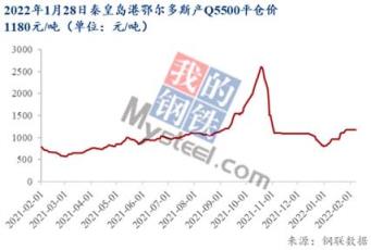 在印尼煤炭出口禁令助推市場看多情緒之下,去年12月觀望等待動(dòng)力煤港口價(jià)格下跌至700元/噸基準(zhǔn)價(jià)的下游采購和貿(mào)易商一擁而上,紛紛加入搶購大軍。不僅如此,由于今年節(jié)前補(bǔ)庫窗口期短、冬奧會(huì)電廠補(bǔ)庫和港口倒掛等利多因素發(fā)酵,秦港Q5500動(dòng)力煤價(jià)格一改12月加速下滑的頹勢,在1月初開始強(qiáng)力反彈,截至1月28日秦皇島港鄂爾多斯產(chǎn)Q5500動(dòng)力煤平倉價(jià)1180元/噸,較上月底增長47.5%,價(jià)格曲線也走出了深V趨勢。