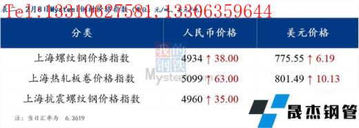 分地區(qū)方面,上海螺紋鋼價(jià)格指數(shù)4934,上漲38.0;上海熱軋板卷價(jià)格指數(shù)5099,上漲63.0。(單位:元/噸)