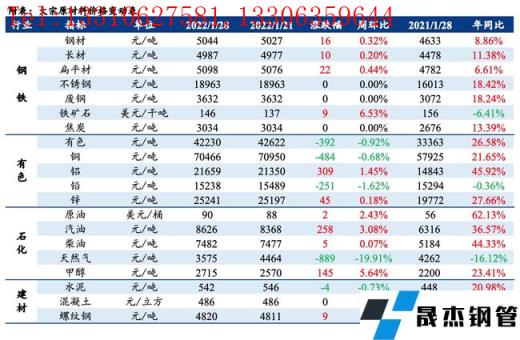 免責(zé)聲明:本網(wǎng)站(山東聊城晟杰無縫鋼管廠m.abagaf.com)刊載的“大宗原材料價格周報(1.24-1.28)”等均源于網(wǎng)絡(luò),版權(quán)歸原作者所有,且僅代表原作者觀點,本文所載信息僅供參考。轉(zhuǎn)載僅為學(xué)習(xí)與交流之目的,如無意中侵犯您的合法權(quán)益,請及時聯(lián)系刪除。本網(wǎng)站刊登此篇文章并不意味著本站贊同其觀點或證實其內(nèi)容的真實性,我們不對其科學(xué)性、嚴肅性等作任何形式的保證。如果侵犯了您的版權(quán),請盡快聯(lián)系我們予以撤銷,謝謝合作!