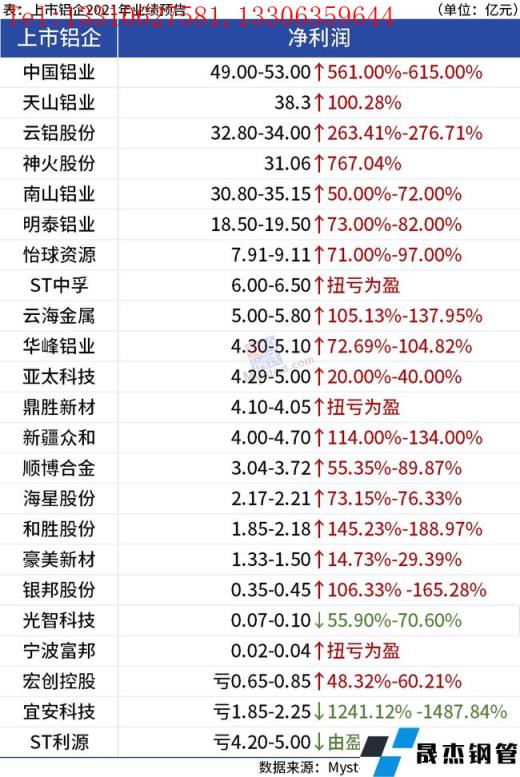 免責聲明:本網(wǎng)站(山東聊城晟杰無縫鋼管廠m.abagaf.com)刊載的“23家上市鋁企披露2021年業(yè)績預(yù)報,超8成凈利潤增長”等均源于網(wǎng)絡(luò),版權(quán)歸原作者所有,且僅代表原作者觀點,本文所載信息僅供參考。轉(zhuǎn)載僅為學習與交流之目的,如無意中侵犯您的合法權(quán)益,請及時聯(lián)系刪除。本網(wǎng)站刊登此篇文章并不意味著本站贊同其觀點或證實其內(nèi)容的真實性,我們不對其科學性、嚴肅性等作任何形式的保證。如果侵犯了您的版權(quán),請盡快聯(lián)系我們予以撤銷,謝謝合作!