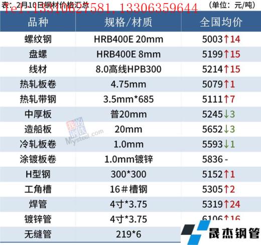 建筑厚壁無縫鋼管:2月10日,全國31個主要城市20mm三級抗震螺紋鋼均價5003元/噸,較上個交易日上漲14元/噸。本周建材產(chǎn)量受春節(jié)影響小幅回落;廠庫、社庫大幅增加,表觀消費(fèi)小幅上升。短期來看,目前市場實際需求并未啟動,現(xiàn)貨價格多受情緒面驅(qū)動上漲,支撐力有限。因此預(yù)計短期現(xiàn)貨市場在情緒面驅(qū)動下價格仍有拉高的可能。