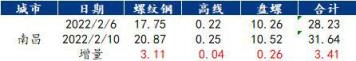 今年春節(jié)節(jié)前JJPG檢修,使得南昌建筑厚壁無縫鋼管市場春節(jié)前庫存非常低,而二月中旬FDTG有計劃進行檢修,對盤螺產(chǎn)量影響較大,由此可預(yù)計南昌建材庫存累庫速度將慢于往年。