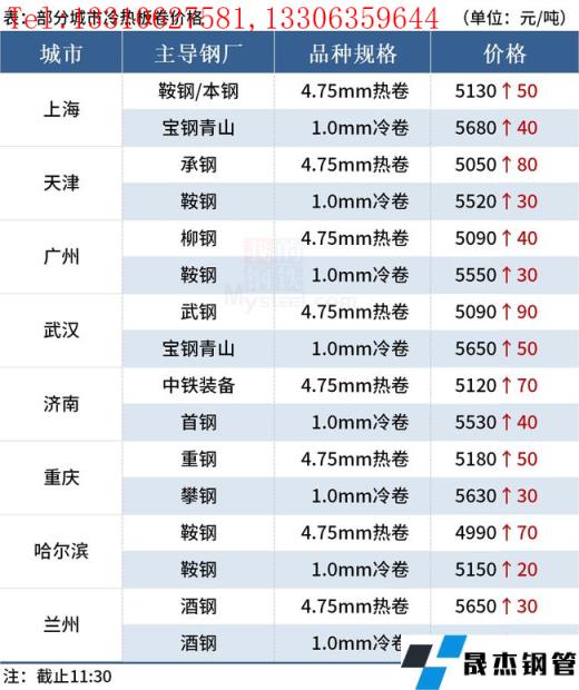◎樂從:11日早盤熱卷市場(chǎng)價(jià)格上漲40,4.75以上普柳燕5090-5100,2.75普5130-5280錳5280-5300。(單位:元/噸)