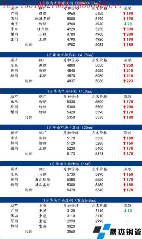 一、1月華南地區(qū)鋼價(jià)整體上行