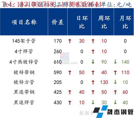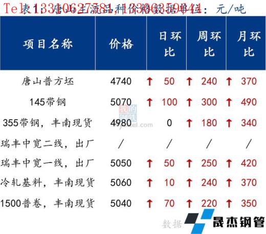 今日唐山管帶價格趨穩(wěn)運行,其中355帶鋼穩(wěn),145帶鋼較昨日漲100元/噸,焊管、鍍鋅管價格穩(wěn)。355帶鋼市場價格先漲后跌,較昨日整體趨穩(wěn)運行。受今日黑色系期貨沖高回落影響,市場心態(tài)發(fā)生變化,對價格偏觀望,謹慎操作為主,成交清淡。